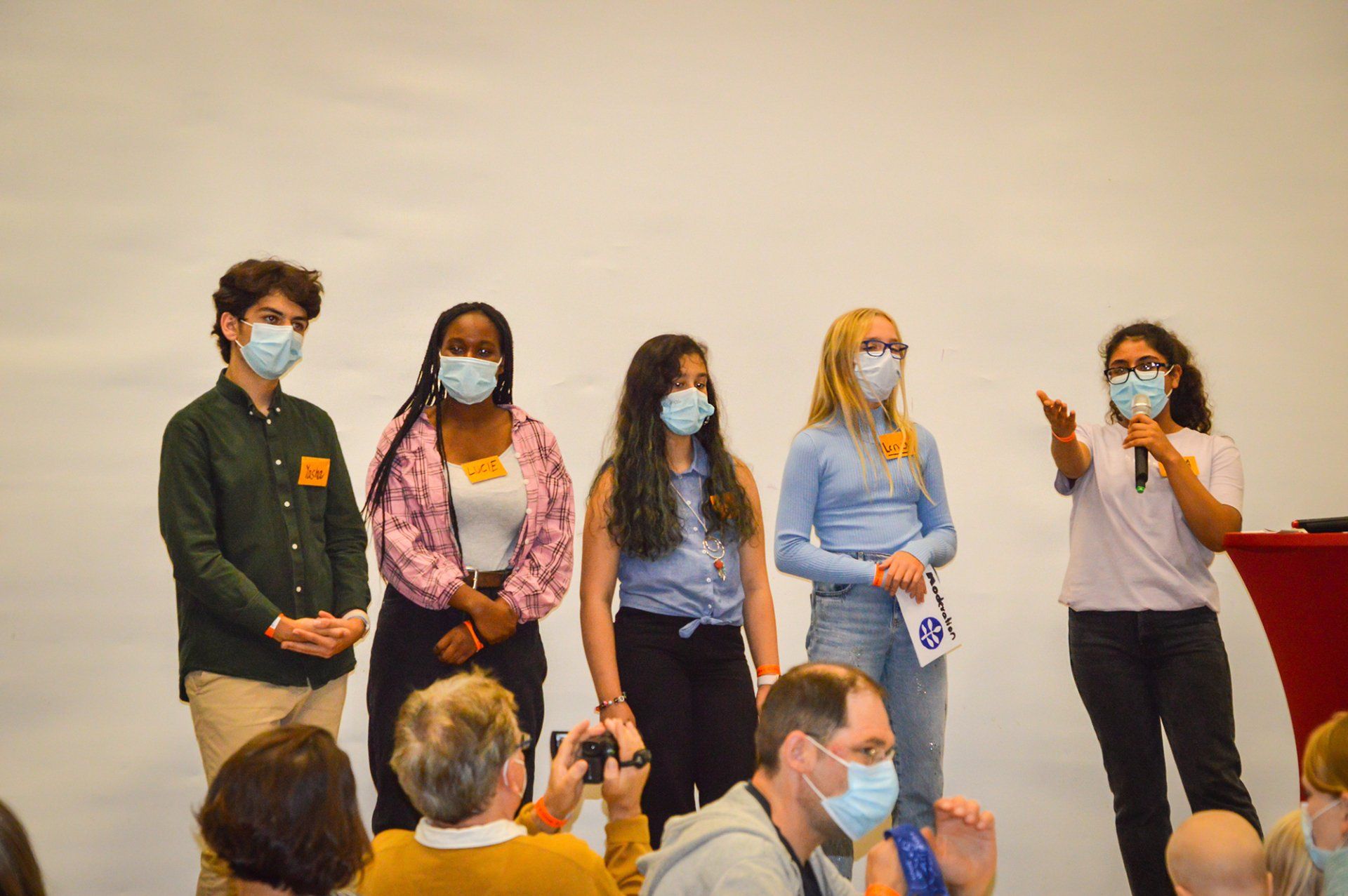 Zu Beginn der Klimakonferenz benennen sie ihre Ziele. "Wir wollen auf Augenhöhe die nächsten zwei Tage zusammenarbeiten", ist von der jungen Moderatorin am Mikrofon zu hören. Die Schüler:innen wollen das Engagement fürs Klima und für nachhaltige Bildung an ihrer Schule und im Stadtteil stärken. Sie wollen neue Verbindungen finden, mit anderen gemeinsam erfahren, was Lernen und Handeln in der Klimakrise bedeuten.